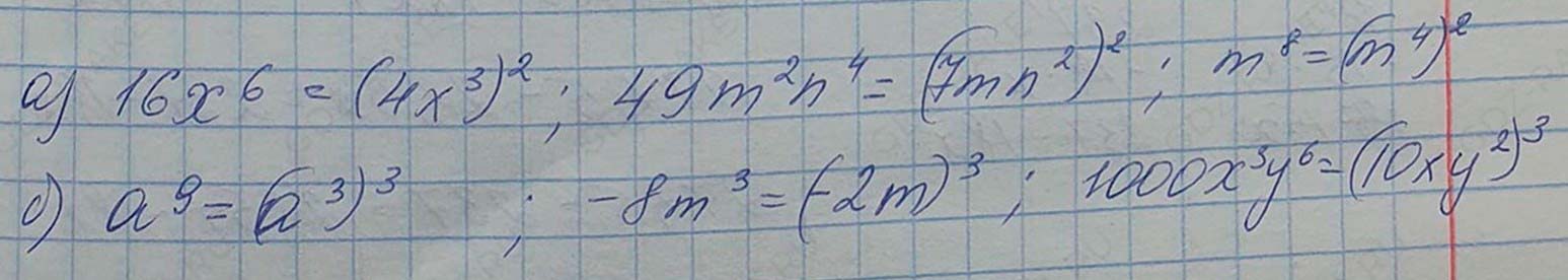 а) 16х6, 49m2n4 и m8 в виде квадрата одночлена;
