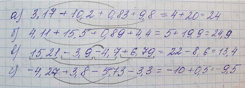а) 3,17 + 10,2 + 0,83 + 9,8;