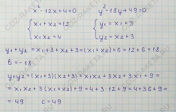 Составьте квадратное уравнение, корни которого на 3 больше соответствующих корней уравнения x2 – 12x + 4 = 0.