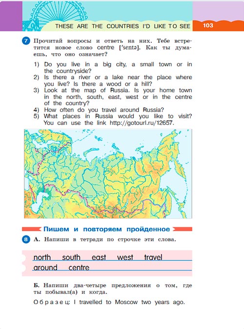 Прочитай вопросы и ответь на них. Тебе встретится новое слово centre [ˈsentə]. Как ты думаешь, что оно означает?