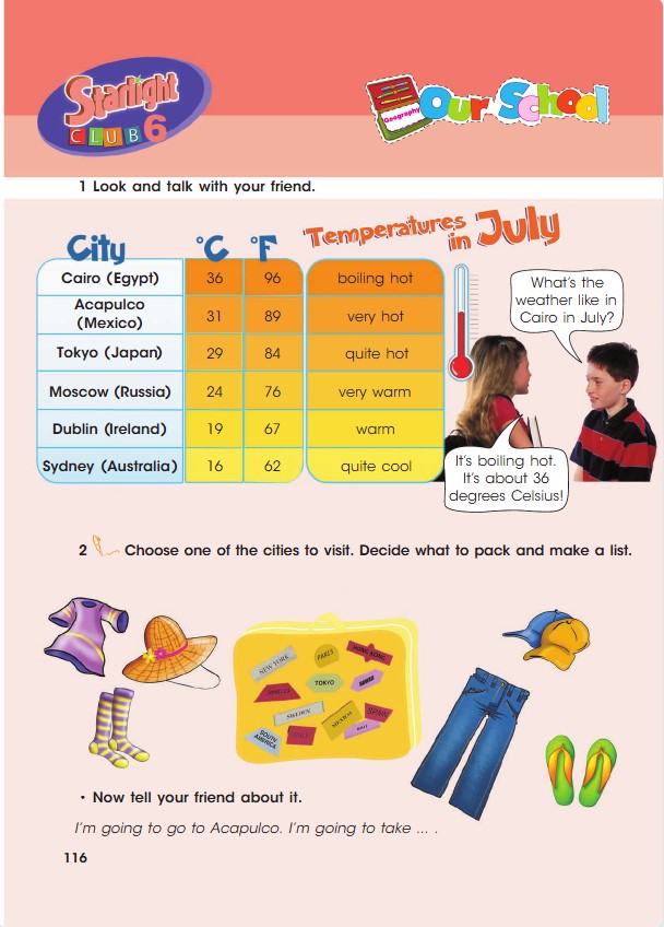 I’m going to Mexico. I’m going to take T-shirt, caps, hat, suncream, camera, shorts, jeans, sneakers, flip flops.
