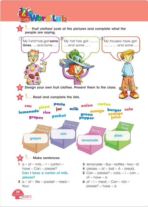 Фруктовая одежда! Посмотри на картинки и дополни то, что говорят люди.