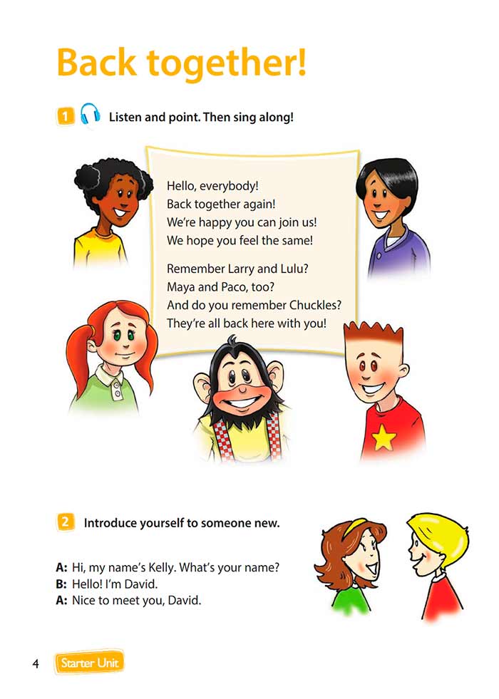 A Hi, my name's Kelly. What's your name? [haɪ maɪ neɪm ‘s kelly wɒt s jɔː(r) neɪm]