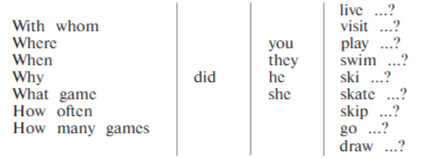 2. виды спорта или игры, (в) которые семьи твоих друзей любят играть или смотреть: футбол, волейбол, гандбол, плавание, прыжки, гонки;