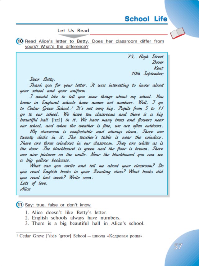 1. Cedar Grove [‘siːdə ‘grəυv] School – школа «Кедровая роща»