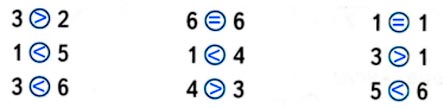 Сравни числа. Запиши в кружок знак >, < или = так, чтобы получилась верная запись.