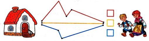По какой дорожке нужно бежать Алёнушке с братцем Иванушкой, чтобы быстрее добраться домой? Найди длину каждой дорожки. Обведи короткую карандашом.