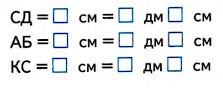Длину каждого отрезка вырази в дециметрах и сантиметрах. Запиши полученные результаты.