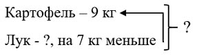 1) 9 – 7 = 2 (кг) – масса мешка с луком;